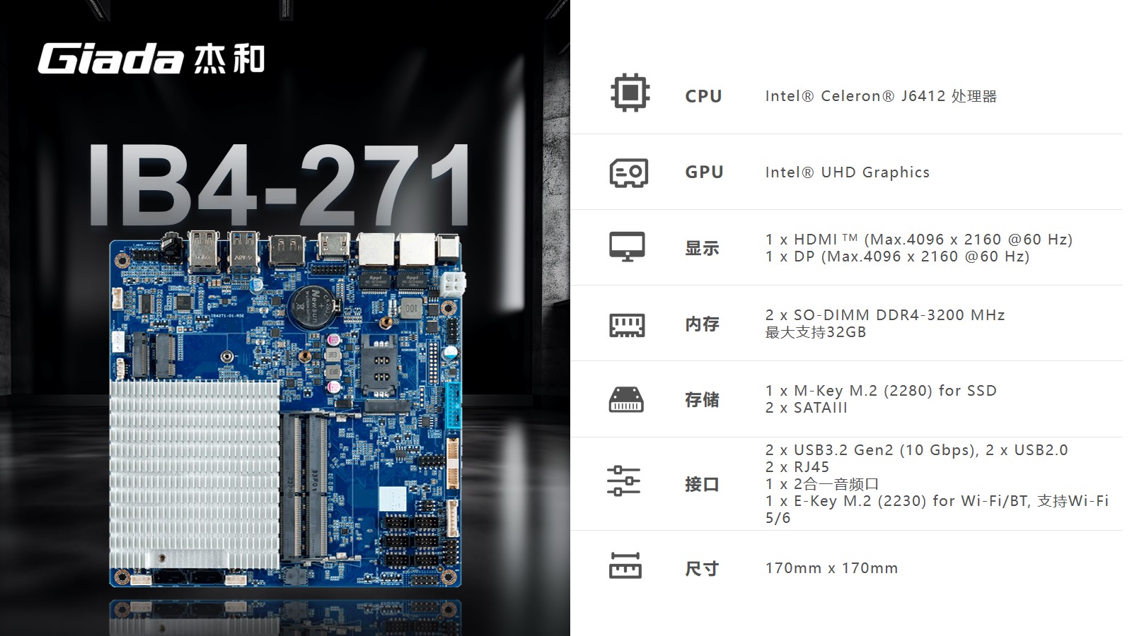 J9平台-J9(中国)IB4-271搭载的是Intel® Celeron® J6412处理器,Elkhart Lake平台在单线程性能上提升了1.7倍,在多线程性能方面提升了1.5倍,具有三个显示输出,包括DP、HDMI 和 LVDS 端口,能够为工业的多媒体应用、标牌显示和数字菜单提供足够的灵活性。