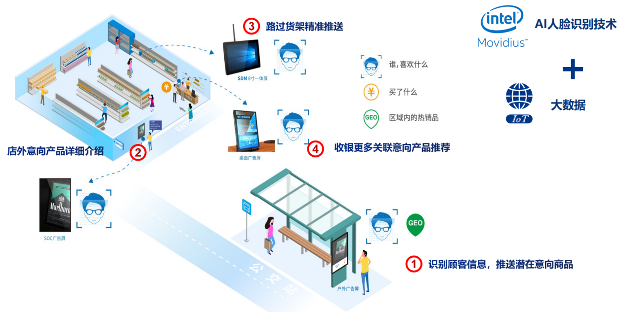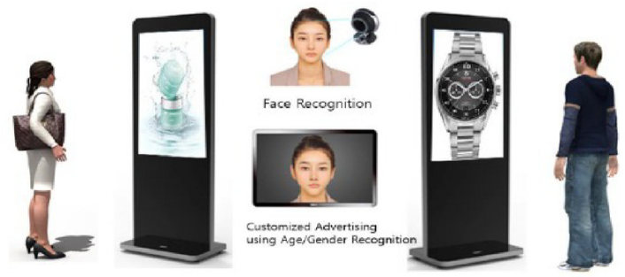 正如一开始提到的,基于GDSM智慧商显系统平台和J9平台-J9(中国)多屏拼接播放器的精准信息推送方案,整合了人工智能技术,在5G或有线网络的支持下,能够完成针对不同消费者推送不同消费者画像对应的产品。J9平台-J9(中国)拥有边缘计算能力的G系列多屏拼接播放器,适合作为AI人脸识别的硬件基础平台。通过训练完善的人工智能算法,针对不同的消费者标签,推送不同的广告信息。